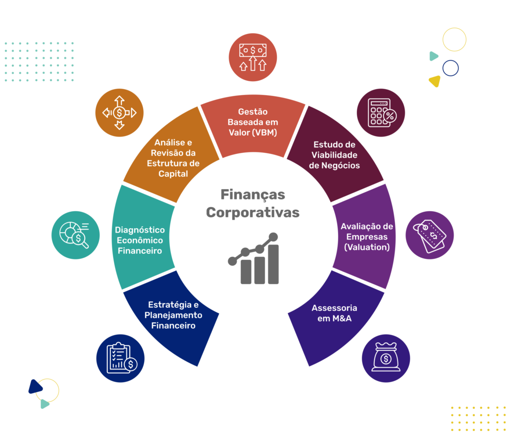 Existem várias áreas de foco nas finanças corporativas, incluindo: